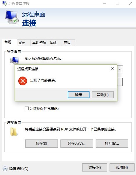 在远程登录VPS服务器有时候会遇到”出现了内部错误“的提示,无法正常登录